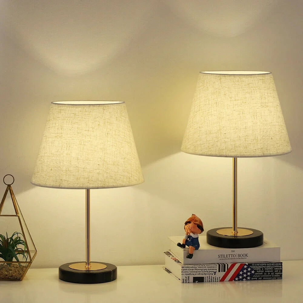 2PCS Vintage Table Lamps with Marble Base and Linen Fabric Shade, Gold