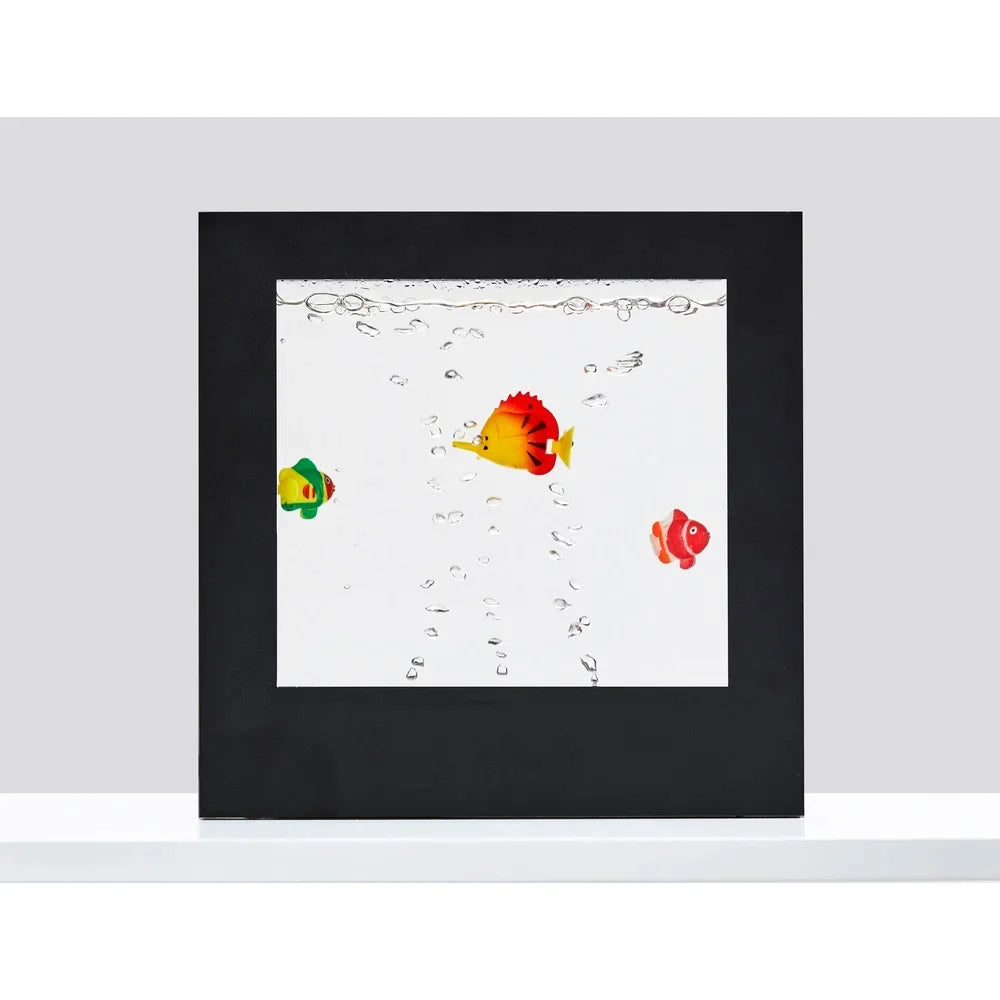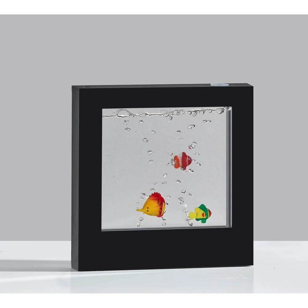 Bring the aquarium to your bedroom or dorm room with this unique Aquarium Light Box! Simply fill with water and turn on with a simple push switch located on the frame. The light box will glow while soothing bubbles cause the fish to swim around. This light box is perfect for small spaces like dorm rooms or apartments as it can sit on the table/desk or be wall mounted! It is the perfect addition to a gallery wall or can stand alone as a decorative nightlight. This item can be battery operated (4 x AA) and also ships with an 8' cord to plug in, offering options to suit the your needs.