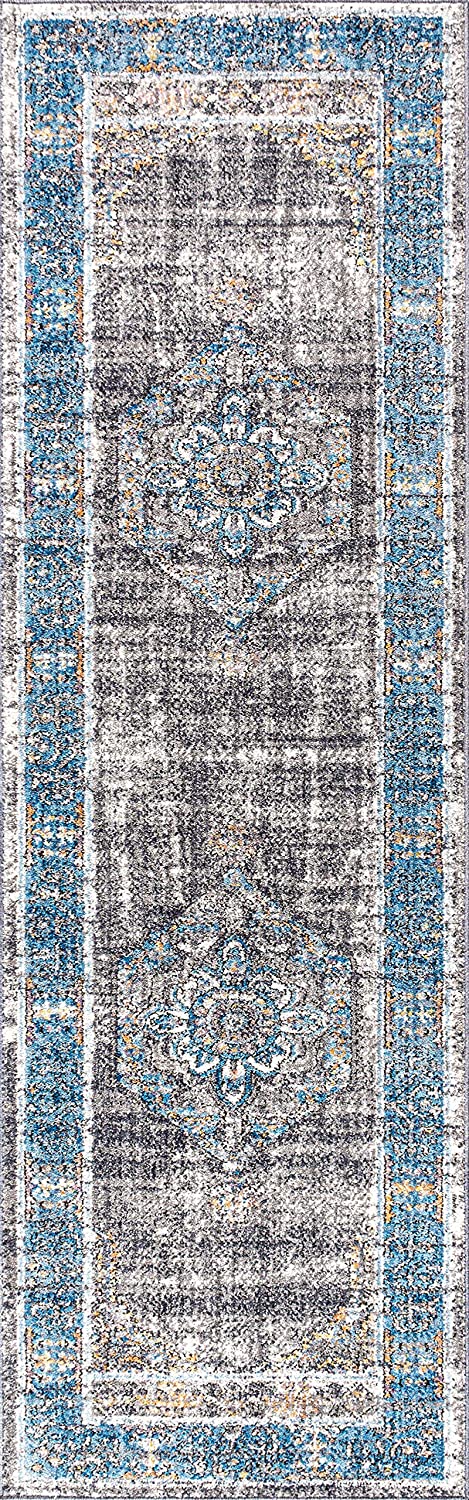 Anatolia Vintage Medallion Peacock Blue/Gray Soft Area Rug