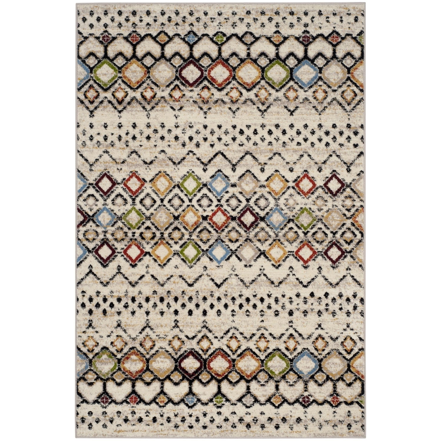 Modern Moroccan Pattern Ivory Multi-Color Area Rug