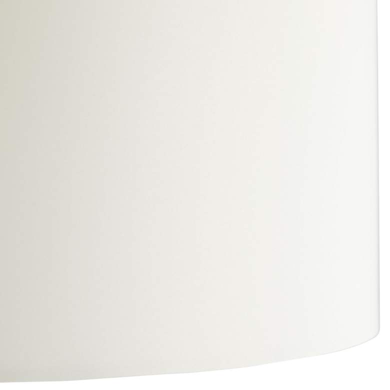 - Oil-rubbed bronze finish over steel construction. White circular marble base. Off-white linen drum shade.