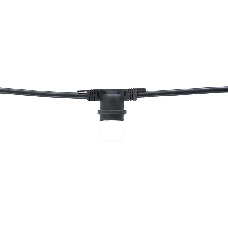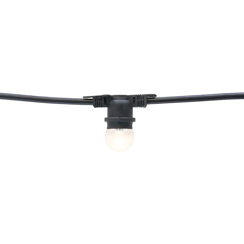 This heavy gauge DIY commercial-grade light string in basic black illuminates your space inside or out with dangling light customization. Express your creativity with a unique do-it-yourself lighting kit that allows you to choose your own bulb colors and shapes. Simply outfit the 50-light set with any style of E26 base bulb at a maximum of 25 watts to complete your indoor or outdoor lighting design. The set features weatherproof PVC sockets strong enough for commercial-grade uses, and is recommended for use with LED bulbs for maximum efficiency and lasting wear. Decorative clear/frosted 1.2 watt LED bulbs (as pictured) are sold separately. Outdoor use recommended only with UL outdoor listed bulbs.