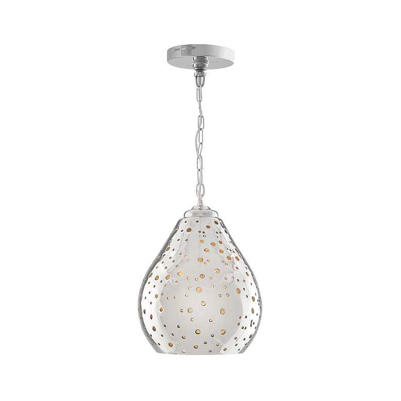 Indulge in Art Deco flavor with a sensual silhouette, choosing this modern mini pendant light to illuminate a reading or dining nook. An intriguing pear-shaped shade with charming flecks offers artful personality that spreads cheer. A polished nickel finish canopy and link chain is fresh and light. This mini pendant light by Capital Lighting is dimmable.