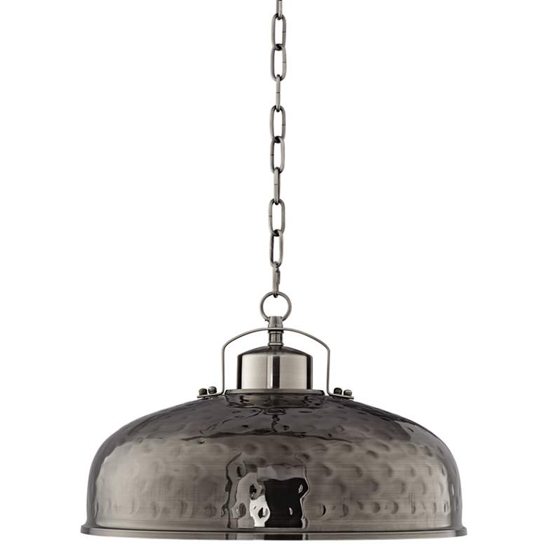 A hand-hammered look and traditional design allow this industrial metal pendant light to illuminate your home with modern flavor.