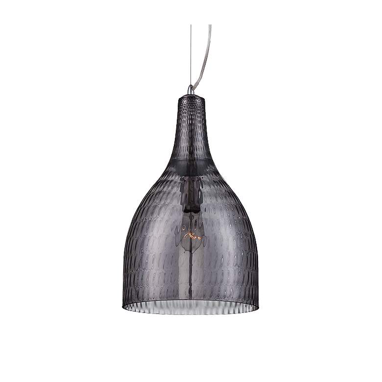 This dazzling large mini pendant features one bulb behind a bottle style dome of glistening faceted transparent smoked glass. Polished chrome finish metal hardware and canopy adds sparkle to this chic and simple look that's ideal for a kitchen, dining counter or home lounge. This small fixture is big on style and can be enhanced by grouping in multiples. Includes a ceiling canopy and 72" chain for hanging. An elegant modern design from Eurofase.