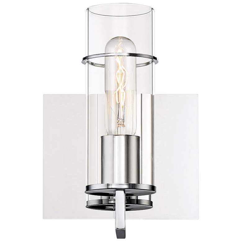 The perfect combination of industrial and minimalist styles, this single-light fixture provides a quick and easy upgrade to any bathroom. From Eurofase, this bathroom wall light features a clear glass shade that shows off the light bulb inside. A chrome ring surround the shade, mirroring the rich finish on the metal frame and adding a futuristic accent.