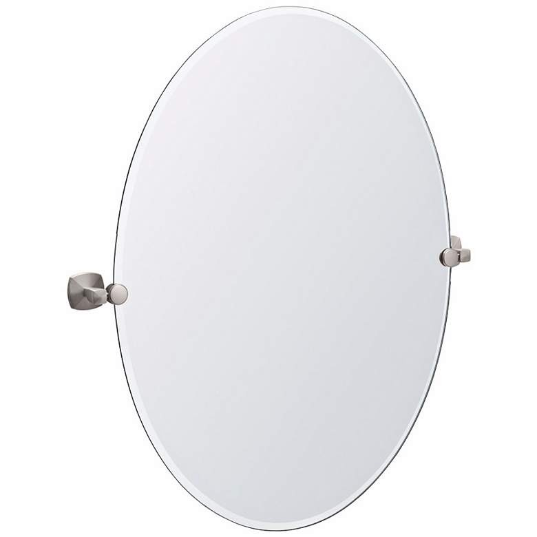 Gatco Jewel Satin Nickel 28" x 32" Oval Tilt Wall Mirror