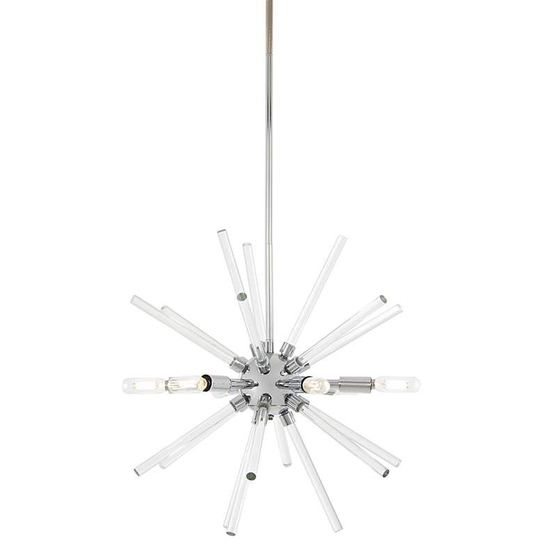 Brilliant design elements make this small six-light chrome pendant an excellent choice for a modern space.