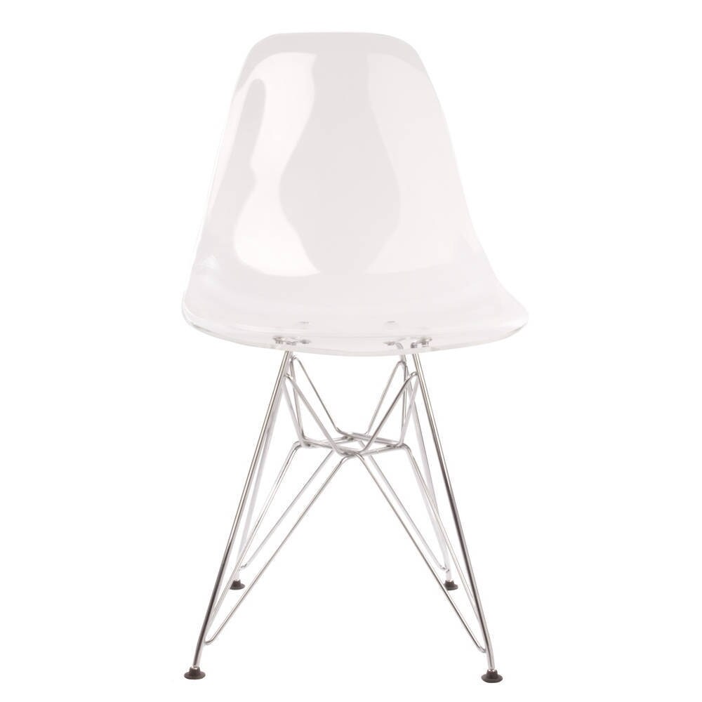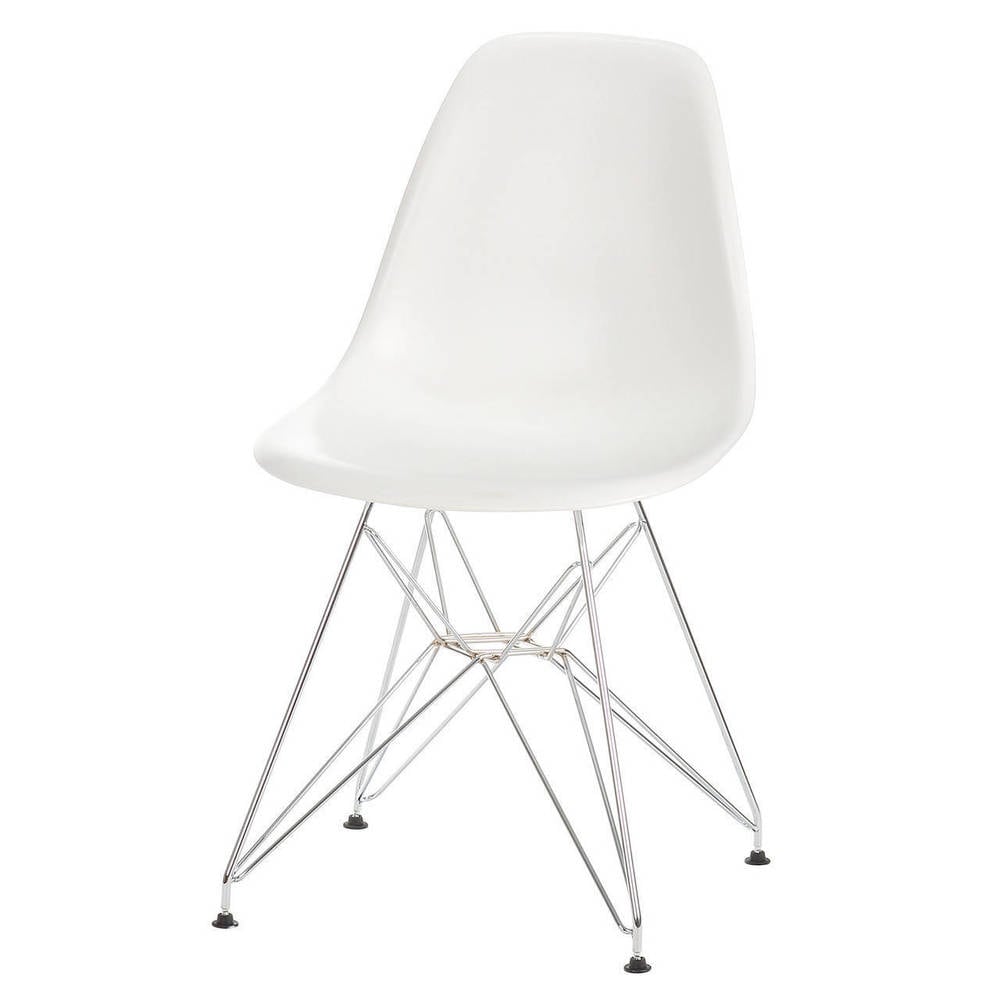 This iconic mid-century modern plastic dining chair is manufactured using a molded (one piece) durable plastic seat. The current models look exactly as the original. The legs are made of steel for extreme durability. This is a versatile and lightweight piece that can accent any kitchen, classroom or restaurant.