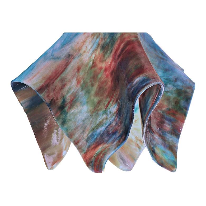 - Brown finish over metal construction. Hand-rolled daylily glass shade.