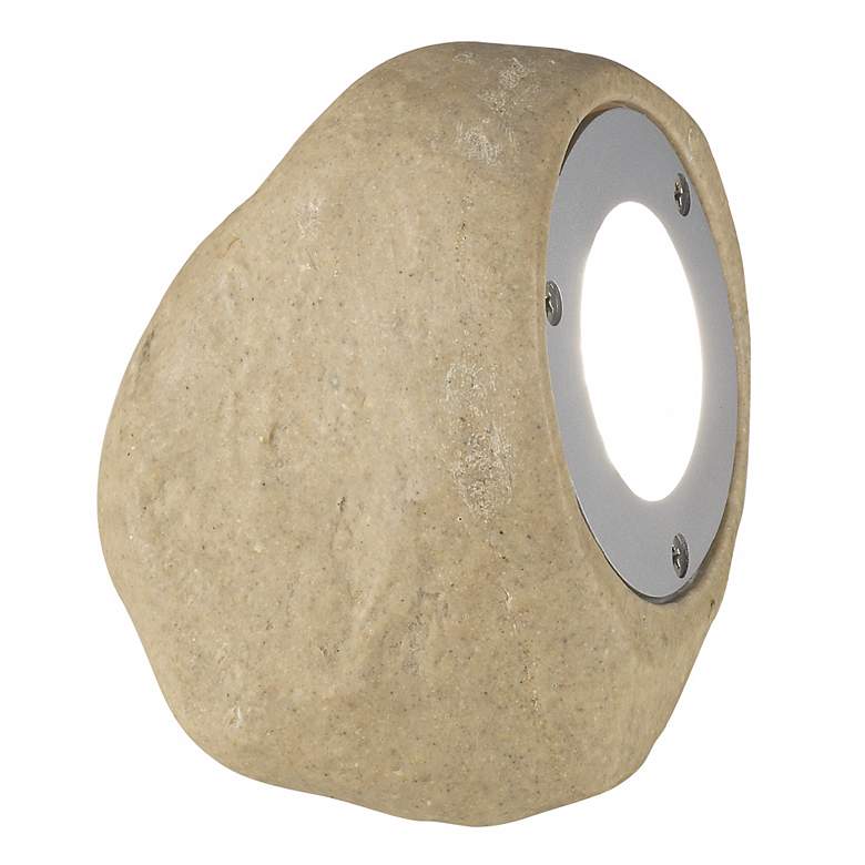 Cluster these garden landscape rock lights as accents in your landscape. These low voltage illuminated rocks are made of durable cast poly resin construction in a sand-tan finish. A tempered glass shields the bulb. Includes six-feet of cord. Works with existing low voltage landscape lighting system sku (48463). Can be added to any existing 12 volt landscape system.