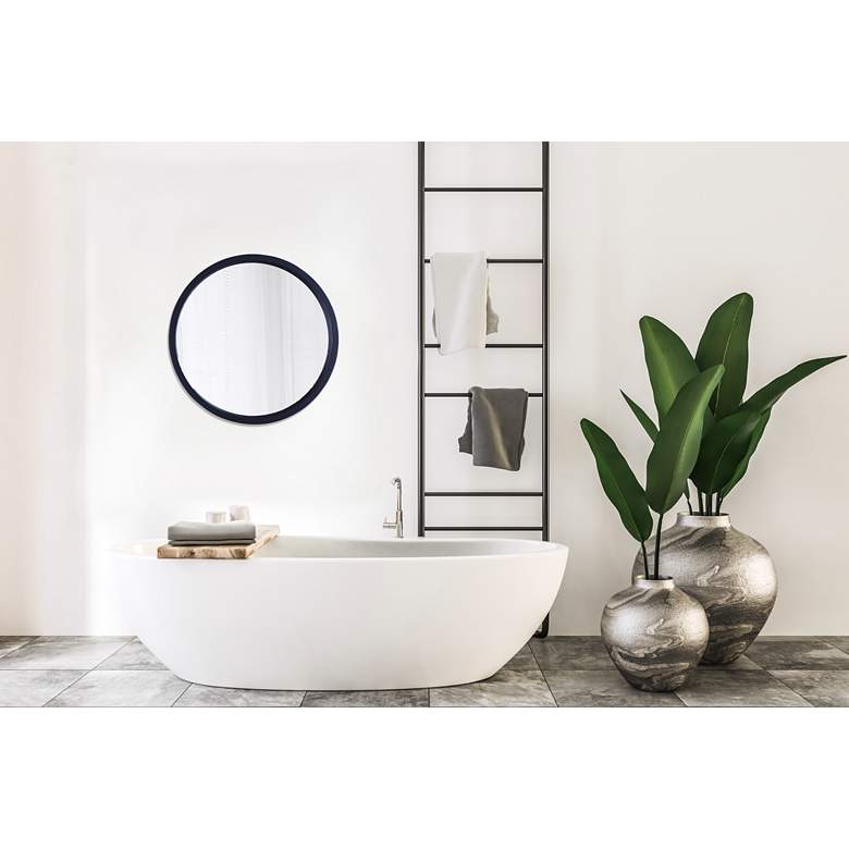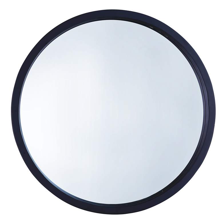 Enjoy bold, expressive style in a round wall mirror that works in a number of design motifs. This round wall mirror by Northwood plays on simplicity for its elegance and versatility. A black finish over processed wood serves as a tasteful frame, nestling a pane of non-beveled glass. Arrives with D-ring hangers on the back for easy mounting.