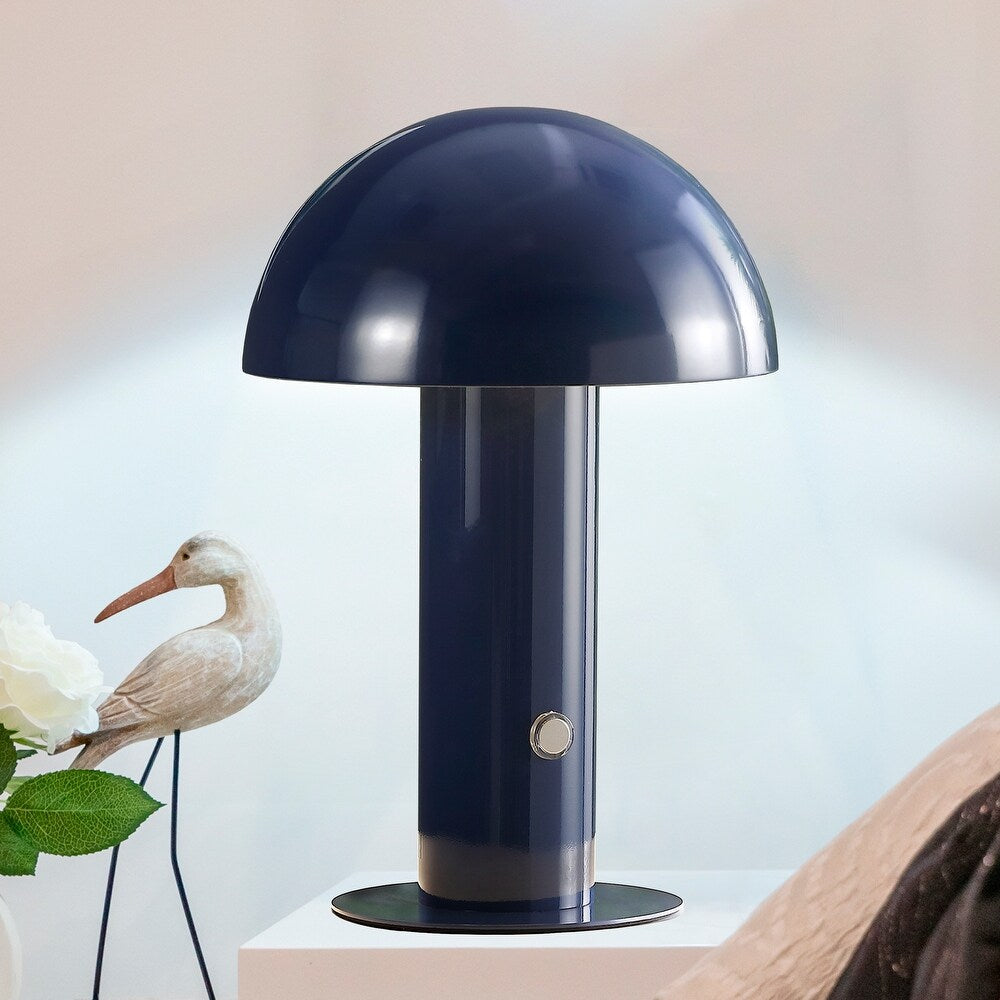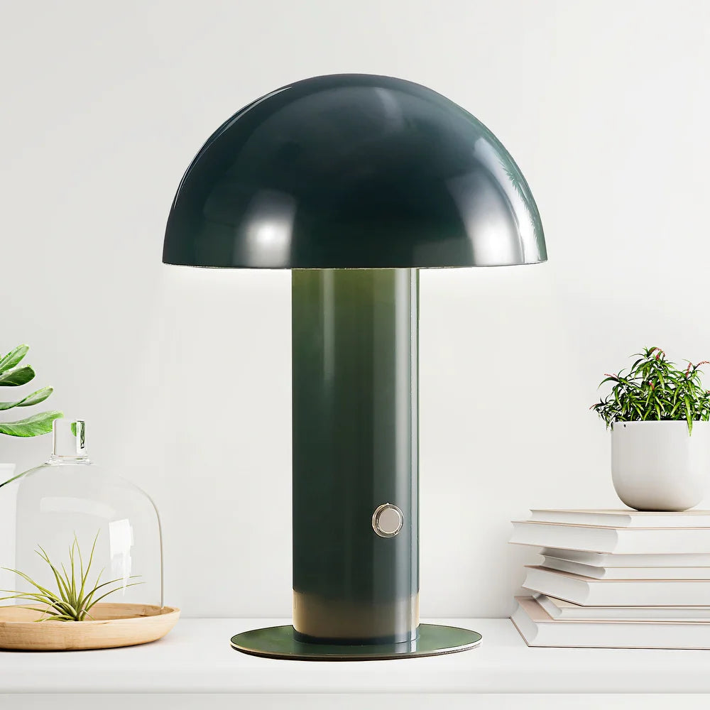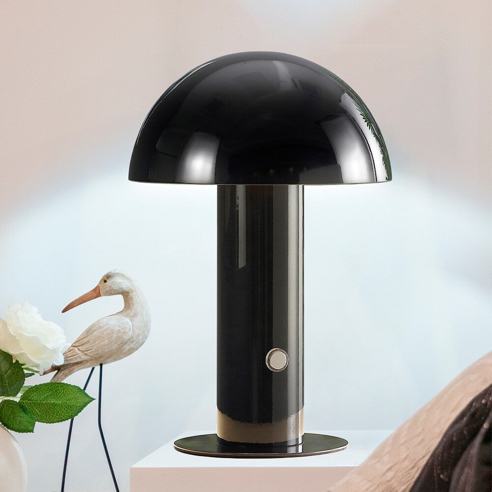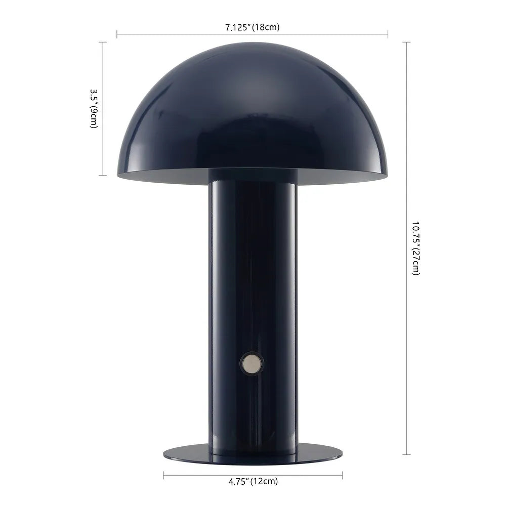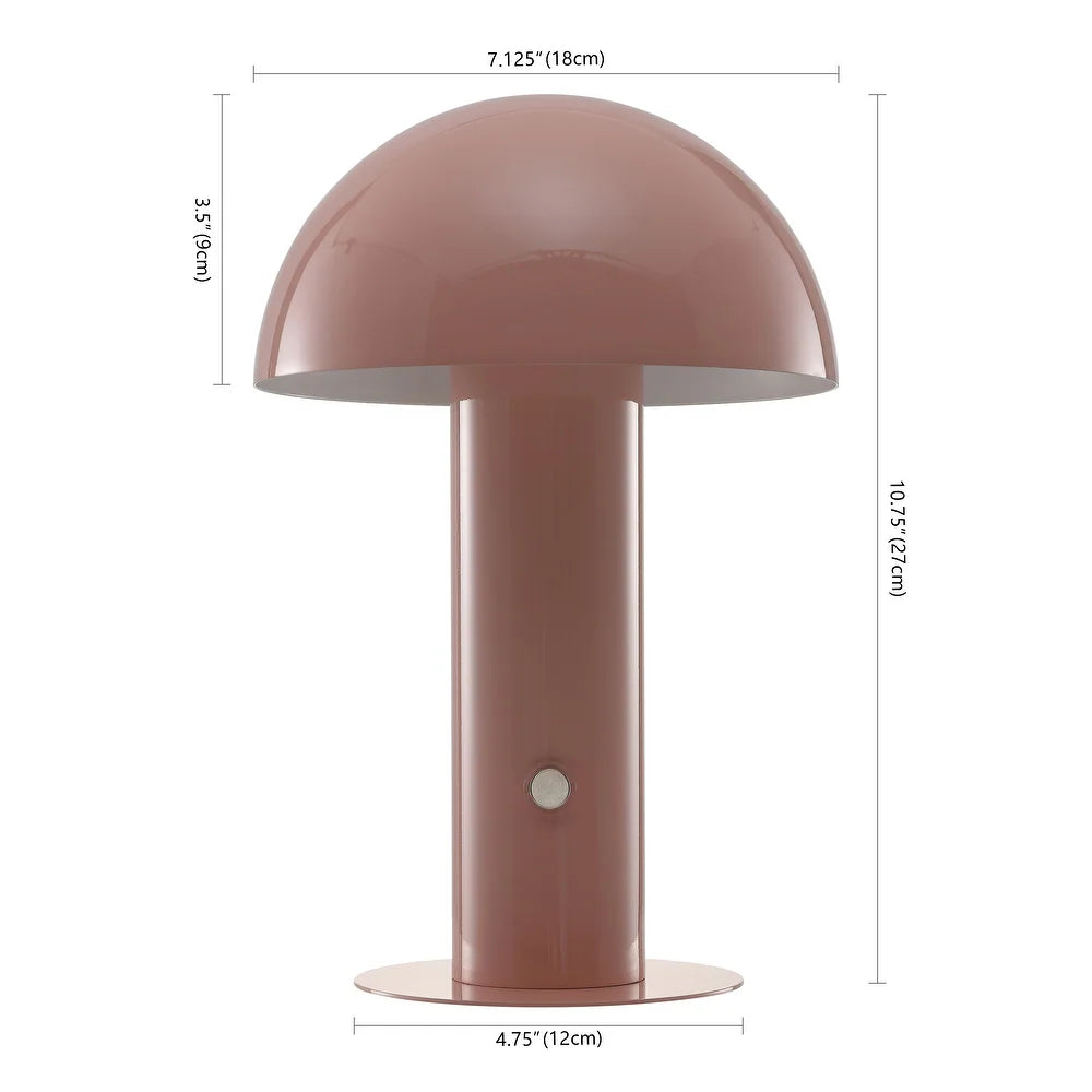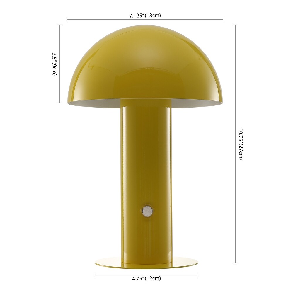 Our portable mushroom lamp's minimalist silhouette is the perfect modern accent for a desk, bar console or vanity. This cordless, rechargeable lamp provides dimmable mood lighting for your dining room, living room, bedroom, or entry. The durable metal design features integrated LED bulbs and a touch sensor to control the three brightness settings.