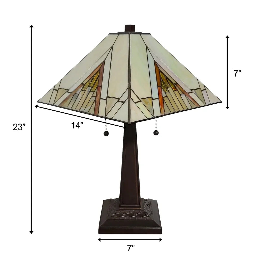 Tiffany Style Table Lamp Mission 23" Tall Stained Glass Tan Decor Night Stand Bedroom Handmade Gift AM348TL14 Amora Lighting