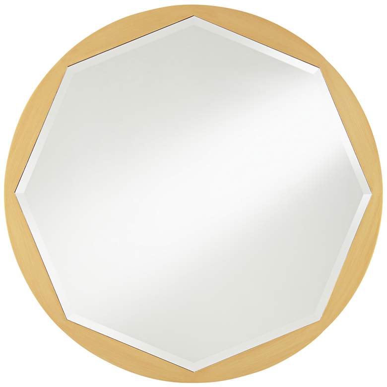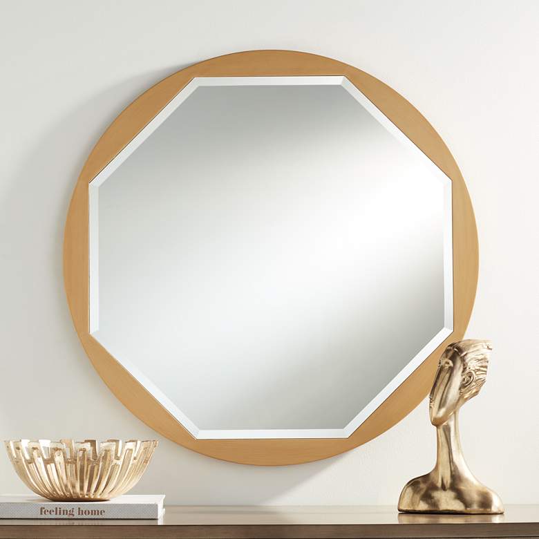 An interior octagon brings subtle whimsy to this modern round wall mirror design. From Noble Park, the mirror features a round frame with a warm brushed gold finish that elevates any decor. The glass within features an octagonal shape with beveled edges that further emphasize its dimensional look.