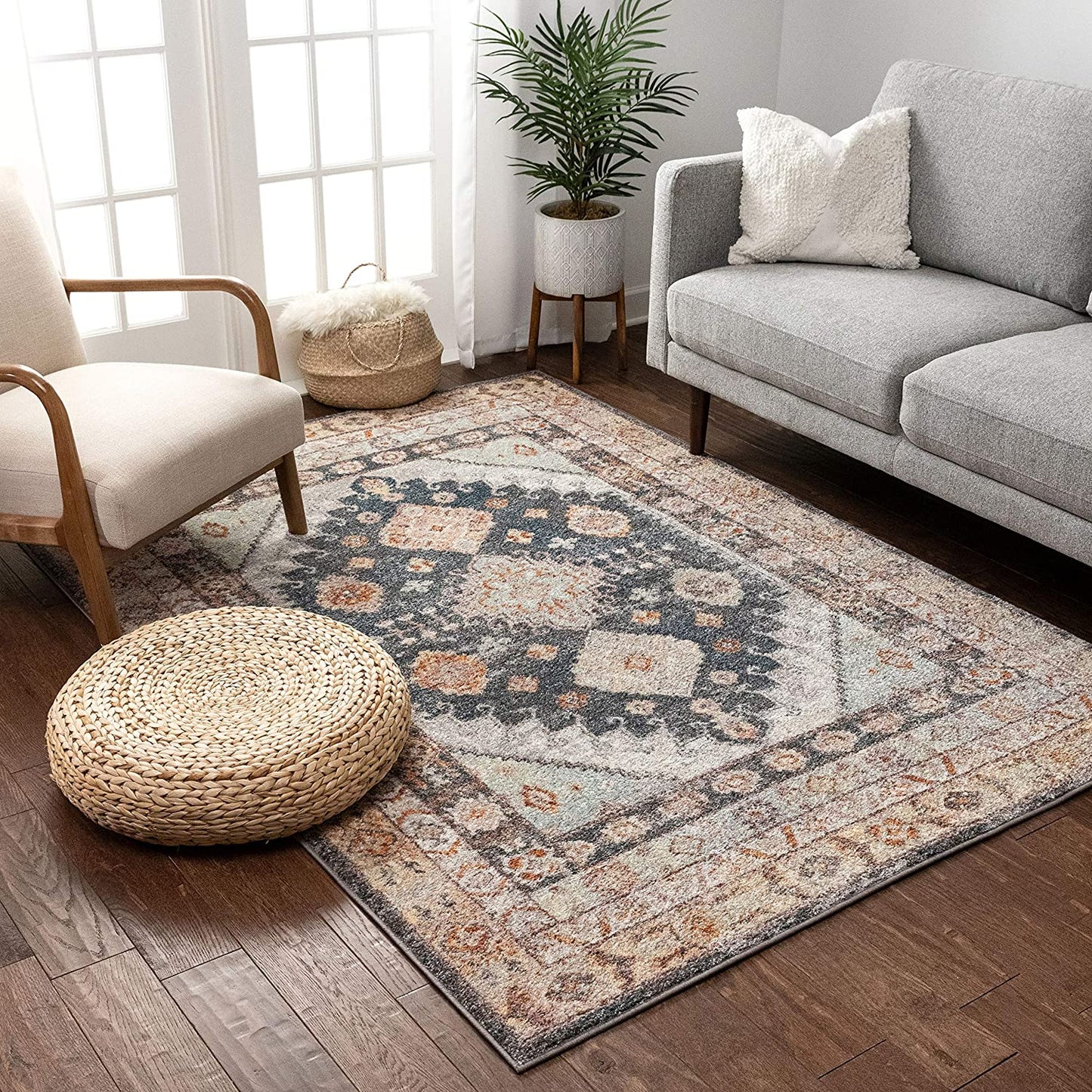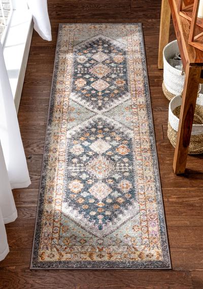 Vera Vintage Blue Tribal Diamond Medallion Pattern Area Rug