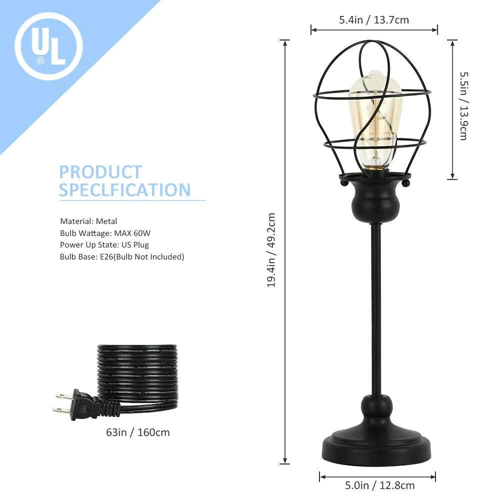 - [INDUSTRIAL & VINTAGE DESIGN] Oumilen industrial table lamp features a black metal pole, metal lamp base and blub shaped metal lampshade, which creates the industrial look and add a touch of aesthetic to any room. The lampshade with bulb shaped metal cage design protects your bulb and gives a new elegant look in your room.