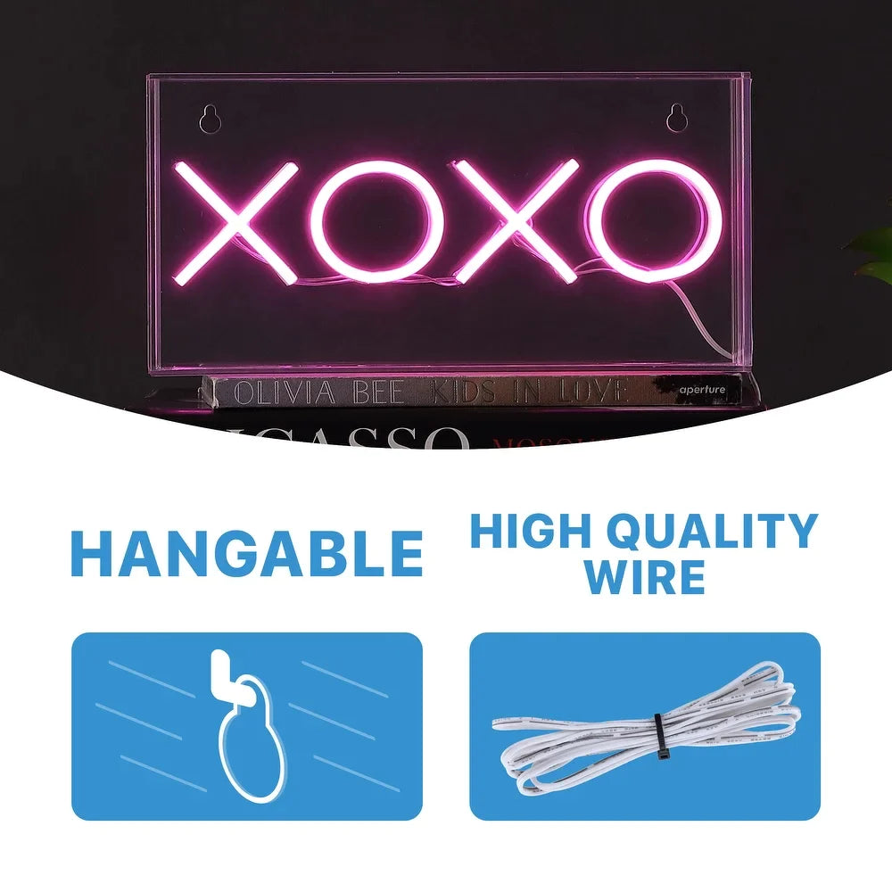Bright neon makes a whimsical addition to your bookshelf or gallery wall. Use the Hugs & Kisses, XOXO sign as a night light, or give as a romantic gift. Convenient, low-voltage USB power is perfect for a bedroom or dorm room.